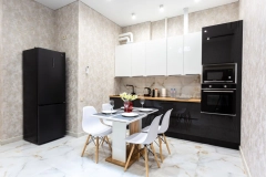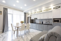 Апартаменты вмещают 4 человека. Изолированная спальня с двуспальной кроватью и кухня-гостиная, с раскладным диваном. Есть всё для комфортного проживания: необходимая техника, современное кухонное обор...