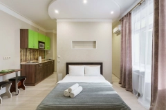 Квартира-студия в новостройке. Комфортабельная квартира вмещает в себя до 4 гостей, радует полной оснащенностью и продуманностью, подходит как туристам, изучающим достопримечательности нашего города, ...